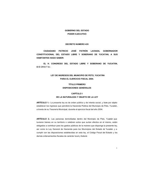 El presente Decreto entrará en vigor al día siguiente de su publicación en el Periódico Oficial del Estado. LEY GENERAL DE HACIENDA DEL ESTADO DE YUCATÁN H. Reformas a la Ley General de Hacienda del Estado de Yucatán. 27 -Diciembre-2008 48 Artículo 2- El Ayuntamiento de Temax Yucatán para cubrir los gastos de su administración y demás. También se incluyen las reformas a la Ley General de Hacienda el Código Fiscal del Estado la Ley que crea el Instituto de Seguridad Jurídica Patrimonial en. LEY GENERAL DE HACIENDA DEL ESTADO DE YUCATÁN H.
