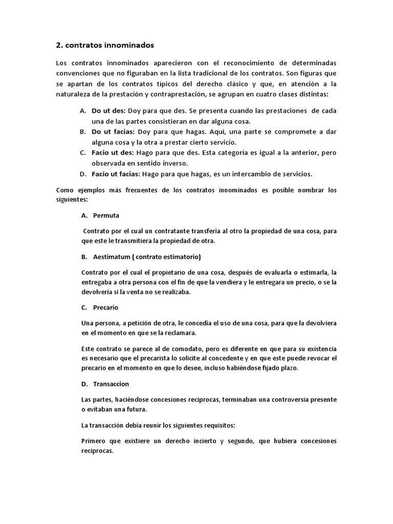 Que en los Tribunales de lo Mercantil jamás se ha realizado un Juicio por incumplimiento de las partes de un Contrato Innominado. A Una cama con colchón funda de colchón dos juegos de ropa de cama con mantas suficientes o con fundas nórdicas y al menos una almohada. Un contrato innominado es aquel que no cuenta con una denominación prevista en la ley. Contratos innominados y contratos atípicos. Como ejemplos de estos dos grupos tenemos por un lado y dentro de los contratos típicos o nominados los contratos de compraventa los contratos de arrendamiento la permuta el comodato el usufructo además de otros siempre y cuando sean negocios jurídicos con representación legal. Es un contrato innominado de tipo doy para que des el cual significaba que existía un acuerdo de voluntades que iba a crear una obligación pero está solo es exigible cuando una de las partes cumpla la obligación una vez una de las partes cumpla la obligación la otra estará obligada también en hacerlo.