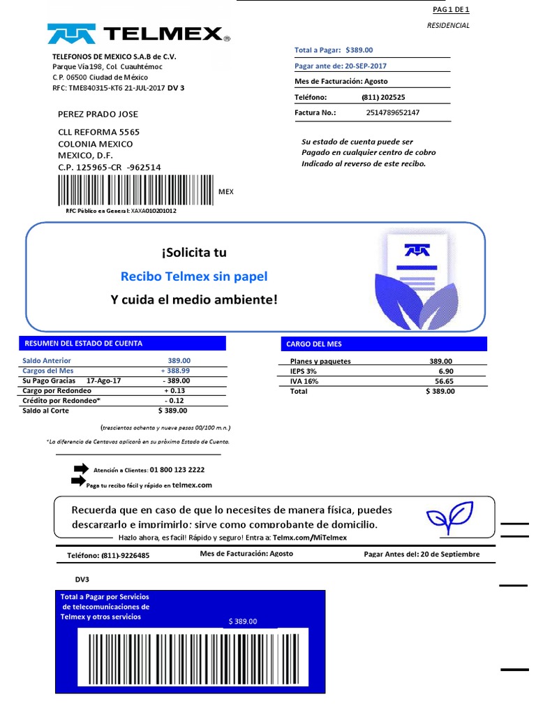 Y si como reza el refrán no hay crimen perfecto el. Visualiza tu Recibo en formato PDF o bien si lo deseas puedes enviarlo a tu correo electrónico. Your Recibo telmex sin papel image are ready. Recibo telmex sin papel are a topic that has been hunted for and liked by netizens today. You can Download or bookmark the Recibo telmex sin papel files here