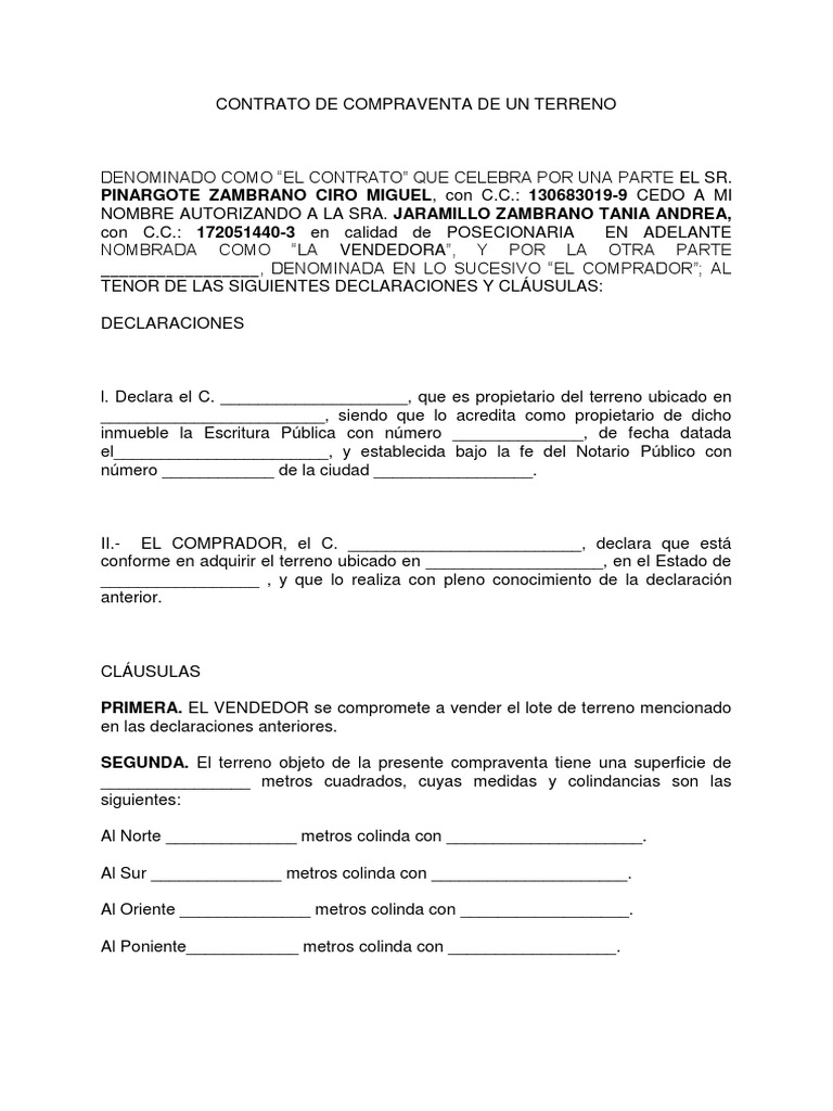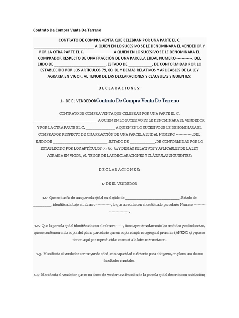 Simple contrato de compraventa de terreno ~ CONTRATO DE COMPRAVENTA DE TERRENO EN PAGOS En la ciudad de _____ en fecha _____ los que suscribimos el presente mayores de edad en pleno goce de todos nuestros derechos civiles y con entera libertad celebramos el siguiente. El contrato de compraventa de terreno es una subcategoría de los contratos de compraventa de un bien inmueble. Indeed recently has been searched by users around us, perhaps one of you personally. Individuals now are accustomed to using the net in gadgets to see video and image information for inspiration, and according to the title of this article I will talk about about Simple Contrato De Compraventa De Terreno Contrato simple de compraventa de terrenos baldíos.